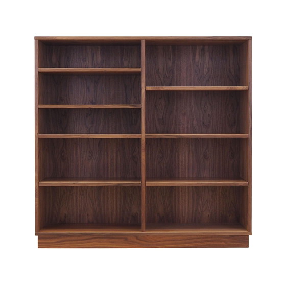 De boekenkast is gemaakt in Scandinavische stijl. De structuur is bekleed met walnootfineer. Het meubel werd op een houten sokkel geplaatst. Het oppervlak is opgefrist. Binnenin is de ruimte opgevuld met zeven praktische planken. Vijf van de planken zijn in hoogte verstelbaar. De boekenkast is de ideale oplossing om een verzameling boeken te beheren in een kleine leefruimte. Daarnaast zal het ook goed functioneren als boekenkast voor verzamelobjecten. Staat: Het oppervlak van het meubel is opgefrist. Kleine krassen, vlekken en verlies van fineer zijn zichtbaar. Grotere gebruikssporen zijn altijd te zien op de foto's. Product klaar voor gebruik. *Om veiligheidsredenen moeten de planken mogelijk worden verwijderd voor transport. Montage zou geen probleem moeten zijn. Neem bij twijfel contact met ons op en we sturen je een instructievideo. Technische gegevens hoogte: 117,5 cm breedte: 120 cm diepte: 32 cm