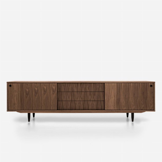 Notenhouten dressoir O-S02 schuifdeur en 3 laden 240