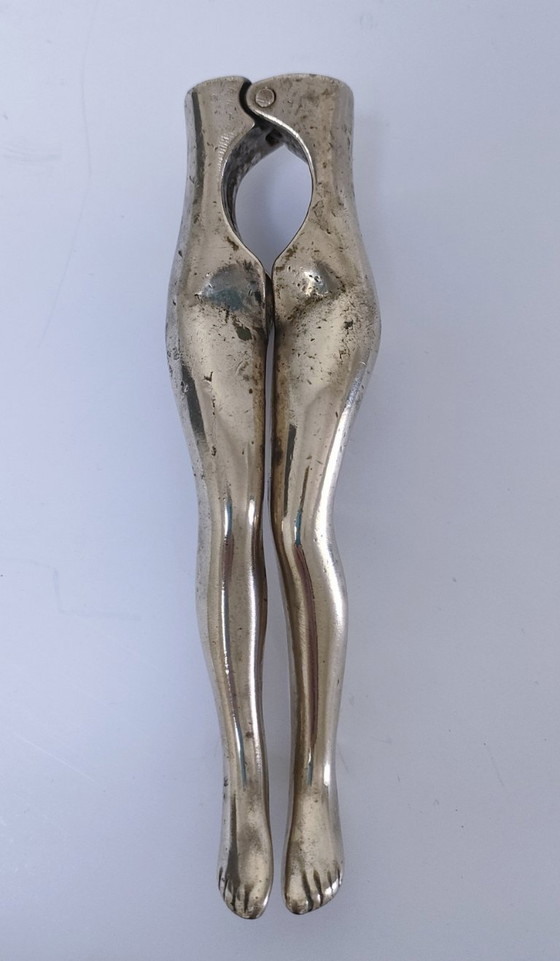 Antropomorfe notenkraker van massief messing (of verguld brons) met de benen van een vrouw.
