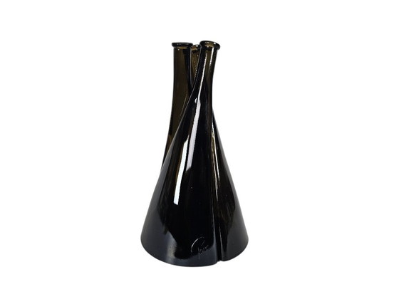 Zeer originele trio van flessen in modernistisch ontwerp, (geperst) gerookt design glas uit de jaren 1970.