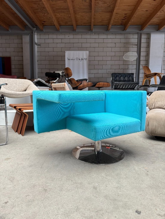De Offecct Solitaire fauteuil is een opvallend stuk dat een vleugje moderniteit toevoegt aan elke ruimte. Met zijn levendige blauwe kleur en unieke ontwerp is deze stoel zowel een visueel als functioneel statement.