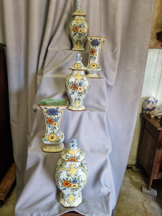Deze prachtige set van Old Delft potten en vazen brengt een vleugje klassieke elegantie in uw interieur. Met hun rijke kleuren en gedetailleerde bloemmotieven zijn deze stukken een eerbetoon aan de traditionele Delftse aardewerkstijl.