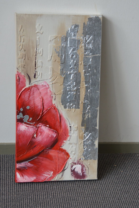 Olieverf schilderij met Chinese tekens met bloem. Dit werk is zeer apart te noemen , heel dik opgezet, maar byzonder aangenaam om naar te kijken. Helaas is de schilder ( es ) onbekend . Hoogte : 60 cm Breedte : 30 cm Diepte : 4 cm Kan worden verstuurd door mijzelf . Ophalen kan ook , of via de Whoppa koerier