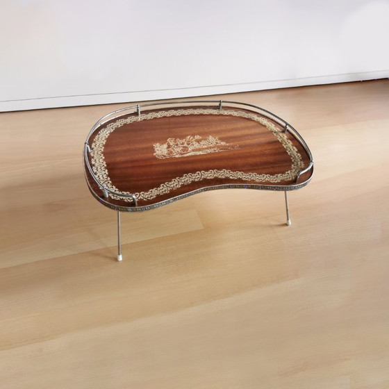 Dienblad voor ontbijt of om in bed te eten met metalen reling en inklapbare poten. Het is in perfecte staat zonder krassen of roest.
