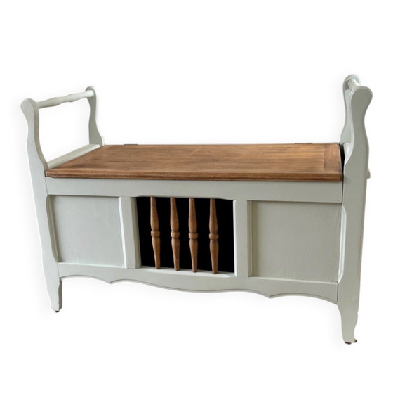 Opgeknapte antieke opbergbank