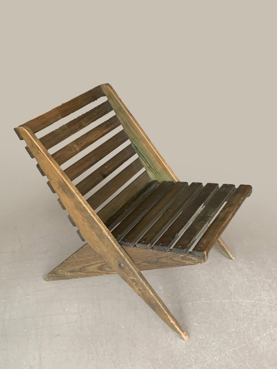 Opklapbare lattenstoel (schaarstoel) uit het midden van de 20e eeuw