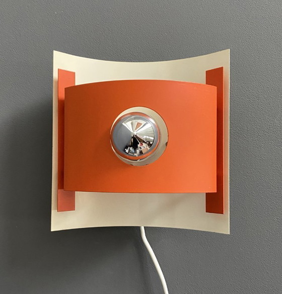 Oranje metalen Anvia Holland wandlamp uit de jaren 70, ruimtevaartstijl.