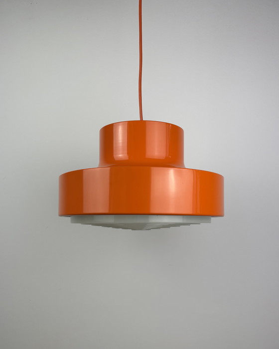 Oranje vintage lamp, Deense minimalistische hanglamp, ruimtetijdperk, metaal, kunststof, jaren 70, midden van de eeuw, UFO, Scan