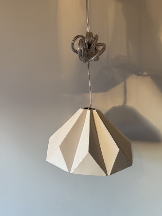 Verlicht je ruimte met deze prachtige, op origami geïnspireerde keramische hanglamp.