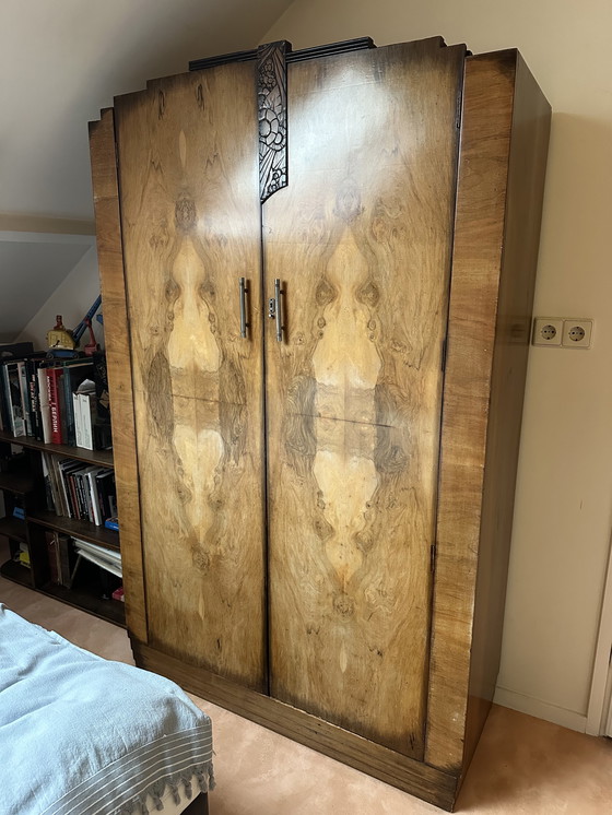 Reis terug in de tijd met deze prachtige originele Art Deco kledingkast, een ware parel voor elke vintage liefhebber. De rijke houttinten en verfijnde details maken het een opvallend meubelstuk dat een vleugje klassieke elegantie aan uw slaapkamer zal toevoegen. Deze kledingkast is vervaardigd uit hoogwaardig hout en toont de prachtige nerfpatronen die kenmerkend zijn voor het Art Deco tijdperk. De gedetailleerde houtsnijwerken op de bovenkant geven het een unieke uitstraling, waardoor het niet alleen een opbergoplossing is, maar ook een kunstwerk. Het ruime interieur is perfect voor het organiseren van uw kleding en accessoires. Mis deze kans niet om dit stukje geschiedenis in uw bezit te krijgen. Het is klaar om charme en karakter aan uw huis toe te voegen!