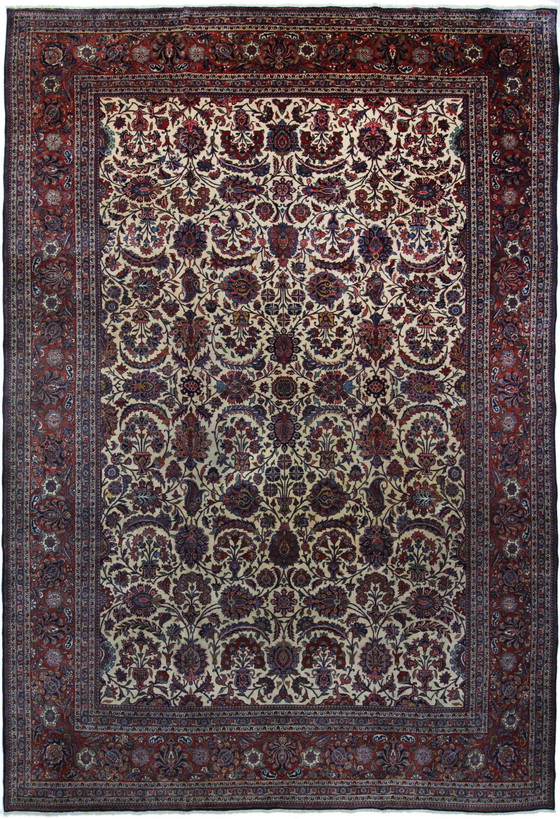 Originele Oude Antieke Keshan Mohtasham Zeer Fijn Semi Antiek 385 X 260 cm