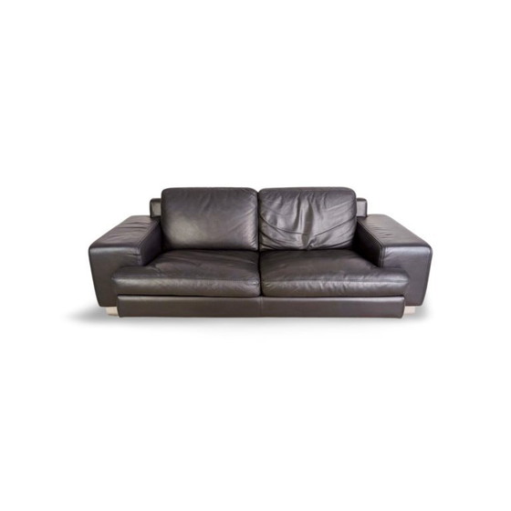 Originele vintage Roche Bobois leren tweezitsbank in zwart.