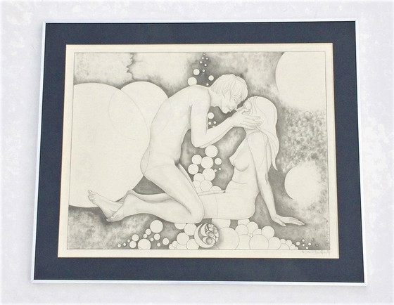 P. de Minter: Schets, 'Esoterische Naakt' jaren 70 ° Vintage ° Naakttekening