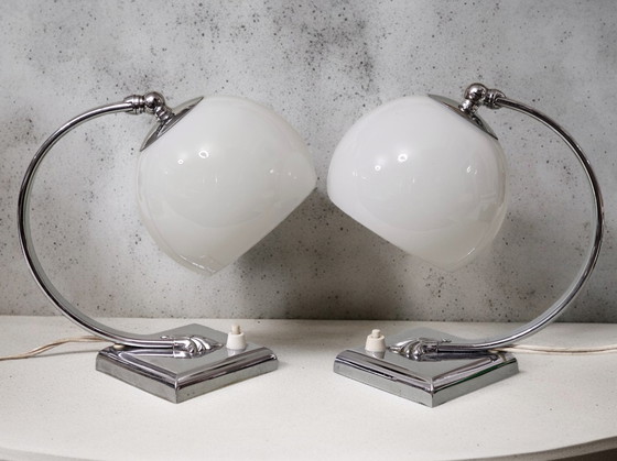 We verkopen een paar prachtige, zeer zeldzame en originele bedlampjes uit de Art Deco periode van de jaren 1920 of 1930, waarschijnlijk uit Duitsland of Oostenrijk.