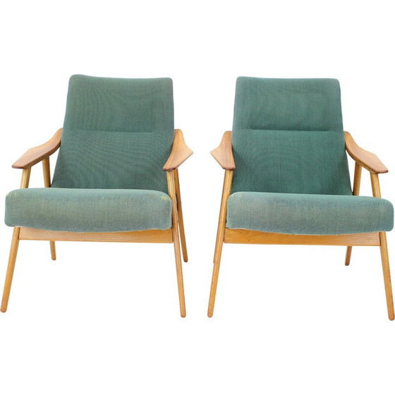 Paar houten en stoffen fauteuils uit de Mid Century, Tsjecho-Slowakije 1960