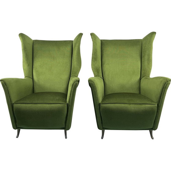 Paar Italiaanse Mid Century Isa fauteuils van groen fluweel, 1950