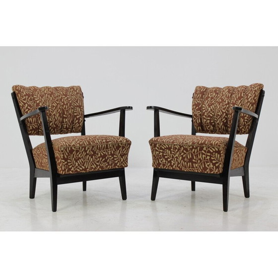 Paar Tsjechische fauteuils met originele bruine bekleding - jaren 1950