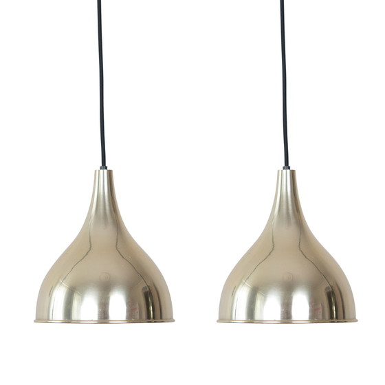 De lampen zijn grondig schoongemaakt, het snoer is vervangen door een nieuw, gevlochten snoer. Een nieuwe metalen kap wordt bij de lampen geleverd.