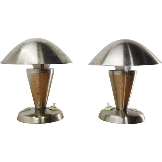 - Gemaakt in Tsjecho-Slowakije, jaren 1930- Bedlampjes met flexibele kap- Originele staat- Chroom met mooie patina- max 250V, 40W- E27 of E26 lampen.- Volledig functioneel- Kabel is 200 cm lang