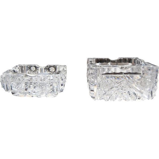 Paar vintage asbakken van geslepen kristal, Tsjecho-Slowakije 1960