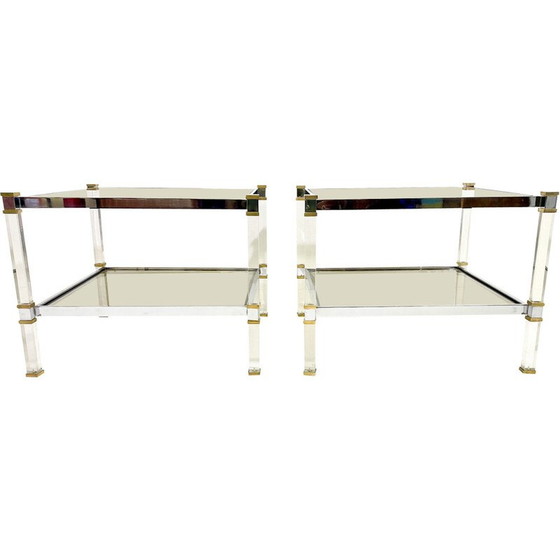 Paar vintage bijzettafeltjes van messing en glas, 1970