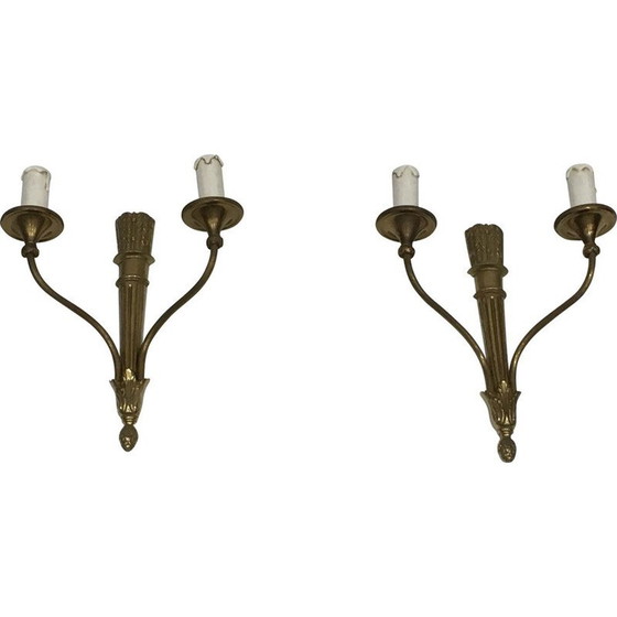 Paar vintage bronzen wandlampen met beugels en linten, Frankrijk 1960