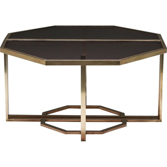 Paar vintage glazen en koperen consoletafels van Maison Jansen, jaren 1970