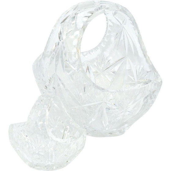 Ontdek de tijdloze elegantie van deze vintage Huta Szkła Julia kristallen manden uit Polen, vervaardigd eind jaren 70 en begin jaren 80. Deze prachtige exemplaren, gemaakt van hoogwaardig 24% loodkristal, zijn met de hand gedecoreerd volgens de traditionele 'ananas'-methode en tonen het uitzonderlijke vakmanschap van de Julia glasfabriek. Perfect als fruitschalen of decoratieve tafelstukken, voegen deze manden een vleugje verfijning toe aan elke tafelsetting. Hun onberispelijke staat en unieke ontwerp maken ze een ideaal cadeau voor speciale gelegenheden of een waardevolle aanwinst voor uw verzameling.