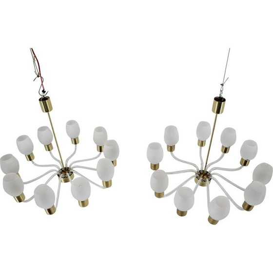 Paar vintage kroonluchters van glas en messing van Kamenický Šenov, Tsjecho-Slowakije 1960