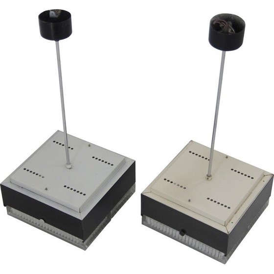 Paar vintage metalen en glazen hanglampen van Napako, 1970