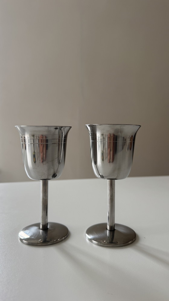 Paar vintage roestvrijstalen bekers - tijdloos en decoratief