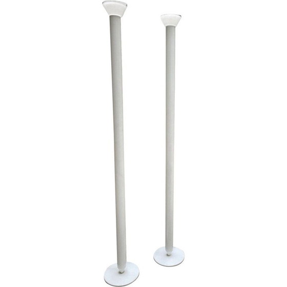 Paar vintage vloerlampen van gelakt metaal en murano glas van Roberto Pamio, 1980