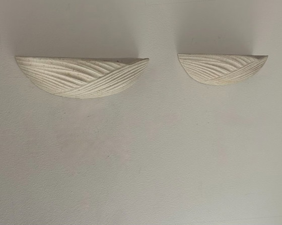 Paar wandlampen in gespikkeld en gestructureerd beige gips, geproduceerd in Frankrijk in de jaren 1970.