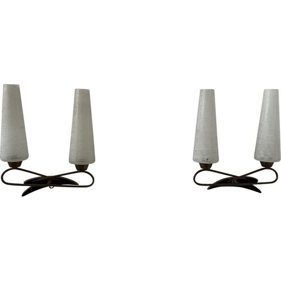 Paar vintage wandlampen van glas en metaal, Frankrijk 1950