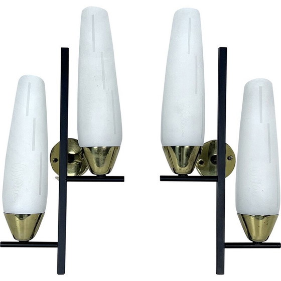 Paar vintage wandlampen van messing en opaal, Italië 1950