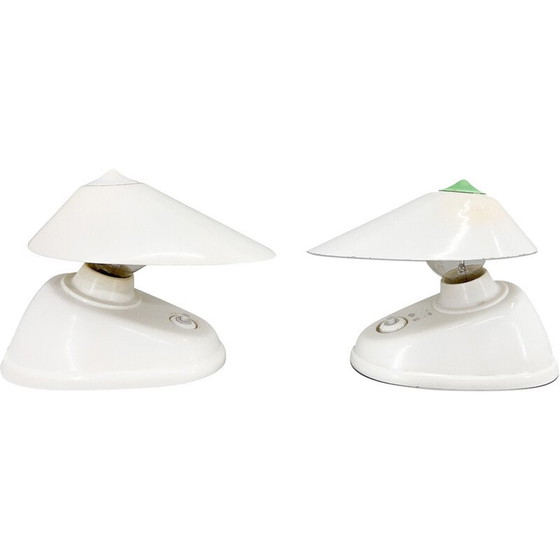 Paar vintage witte bakelieten tafellampen, Tsjecho-Slowakije 1960