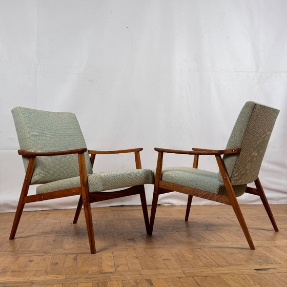 Paar volledig gerenoveerde Tsjechoslowaakse Interier eiken fauteuils, jaren 1960 - Mid Century Modern