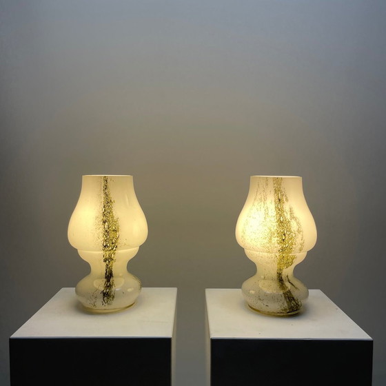Paar wit en groen glazen paddestoel tafellampen van Doria Leuchten, 1970