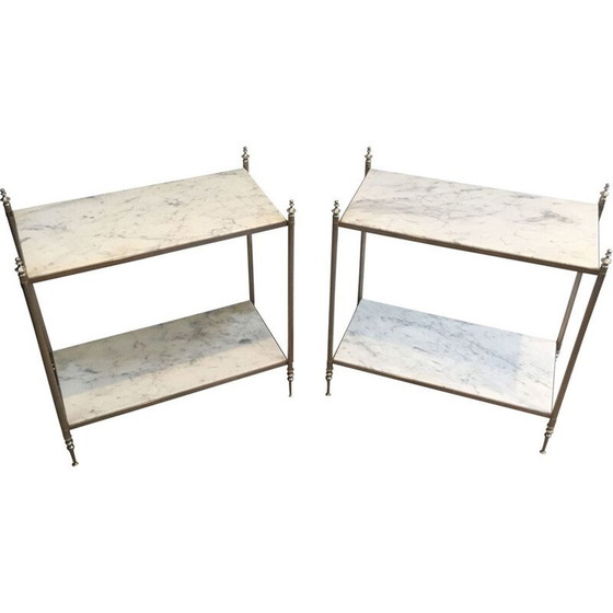 In de smaak van het huis Jansen, zeldzaam paar zilveren bankscharnieren met wit marmeren blad. Circa 1940
