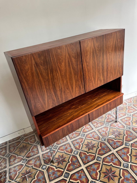 Highboard uit palissander. Dankzij de opvallende nerf altijd een stijlvolle eyecatcher in het interieur
