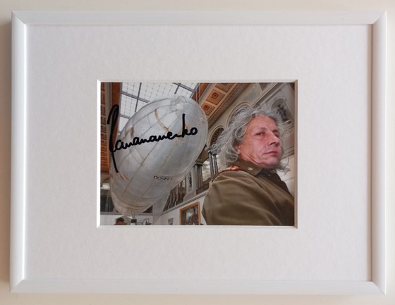 De originele foto is genomen in het Koninklijk Museum voor Schone Kunsten in Brussel, in januari 2006. In 1972 werd de ontzagwekkende 'The Aeromodeller' voor het eerst geëxposeerd op Documenta 5 in Kassel, de tentoonstelling die Panamarenko definitief op de kaart zette van de internationale hedendaagse kunst. De foto, afgedrukt op Fujifilm Crystal Archive Supreme fotopapier, is indertijd handgesigneerd met zwarte viltstift tijdens de expo ‘Luchtschipbouw’ in Borgerhout. Professioneel ingelijst in witte composiet lijst met echt glas. Buitenafmetingen lijst: 18,8 x 24,8 x 1,4 cm (7,4” x 9,8” x 0,55”) (H x B x D).