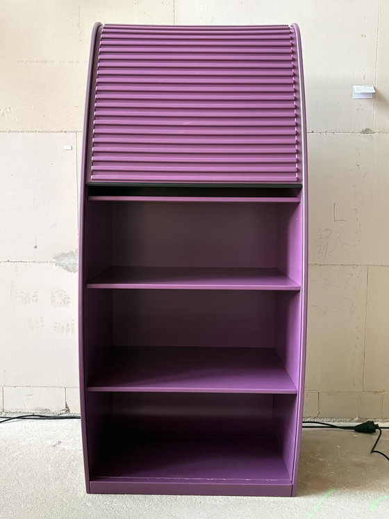 De kast, met zijn kenmerkende geribbelde roldeur, is een designklassieker geworden.