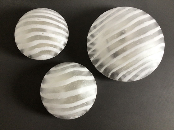 Set Peill & Putzler lampen. Gestreept dik glas.