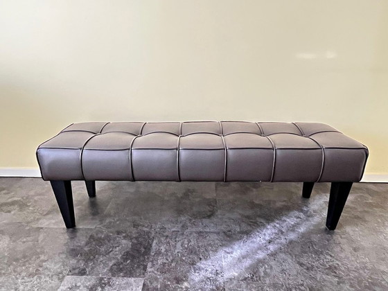 PENINSULA gestoffeerde bank van Lambert/D, leer Mocca 140x42