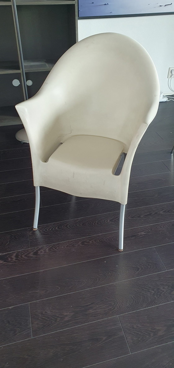 Deze moderne Philippe Starck Lord Yo stoelen zijn een stijlvolle toevoeging aan elk interieur. Gemaakt van duurzaam plastic met metalen poten, bieden ze zowel comfort als stevigheid. Perfect voor zowel eetkamers als vergaderruimtes, deze stoelen combineren functionaliteit met een strak design.