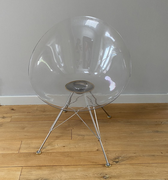 Ontworpen door Philippe Starck voor Kartell. Transparante kuipstoel op metalen onderstel.