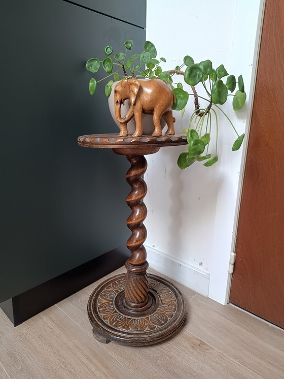 Deze prachtige piëdestal, vervaardigd uit massief hout, voegt een vleugje klassieke elegantie toe aan elke ruimte. Met zijn gedraaide kolom en gedetailleerde voetstuk is dit stuk een toonbeeld van vakmanschap en stijl. Perfect voor het tentoonstellen van planten, kunstwerken of decoratieve objecten, biedt deze piëdestal zowel functionaliteit als esthetische waarde. De warme bruine tint van het hout straalt een tijdloze charme uit die moeiteloos in diverse interieurstijlen past. Voeg een verfijnde touch toe aan uw huis met dit unieke decoratieve element.