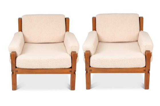 Pierre Chapo. Paar armstoelen van iepenhout. 1970s.