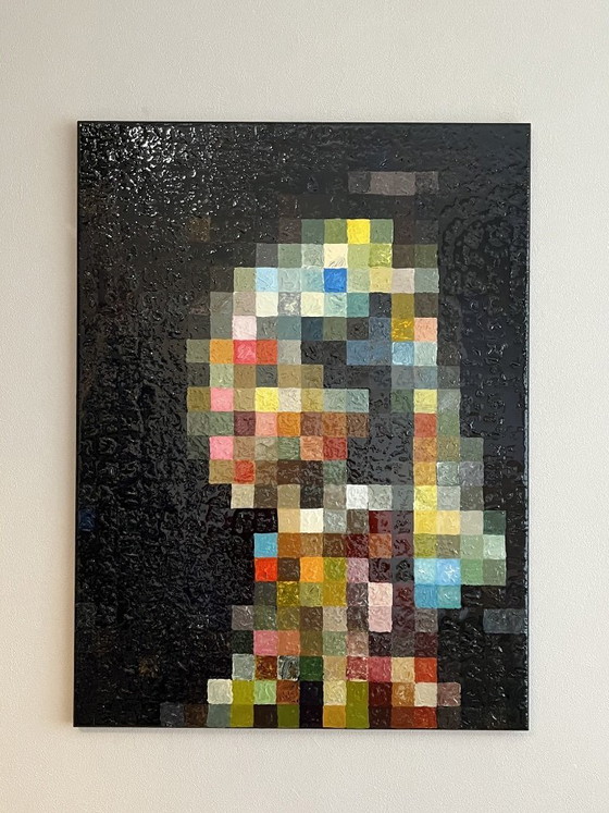 Pixelkunst: Meisje met een parel – Modern harsschilderij