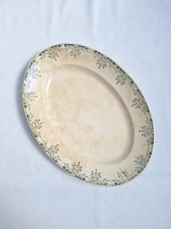 Antieke Mignon ovale schaal van ijzerwerk geproduceerd aan het einde van de 19e eeuw door de Sarreguemines fabriek. Enkele kleurveranderingen in de loop der tijd, zichtbaar op de foto's. Afmetingen: Lengte: 36 cm Breedte: 26 cm Zorgvuldig verzonden.
